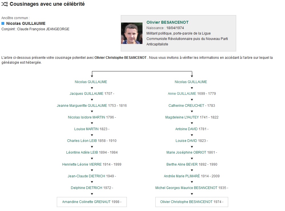 Olivier BESANCENOT, Révolutionnaire professionnel, descendant de Nicolas GUILLAUME et de Françoise JEANGEORGE