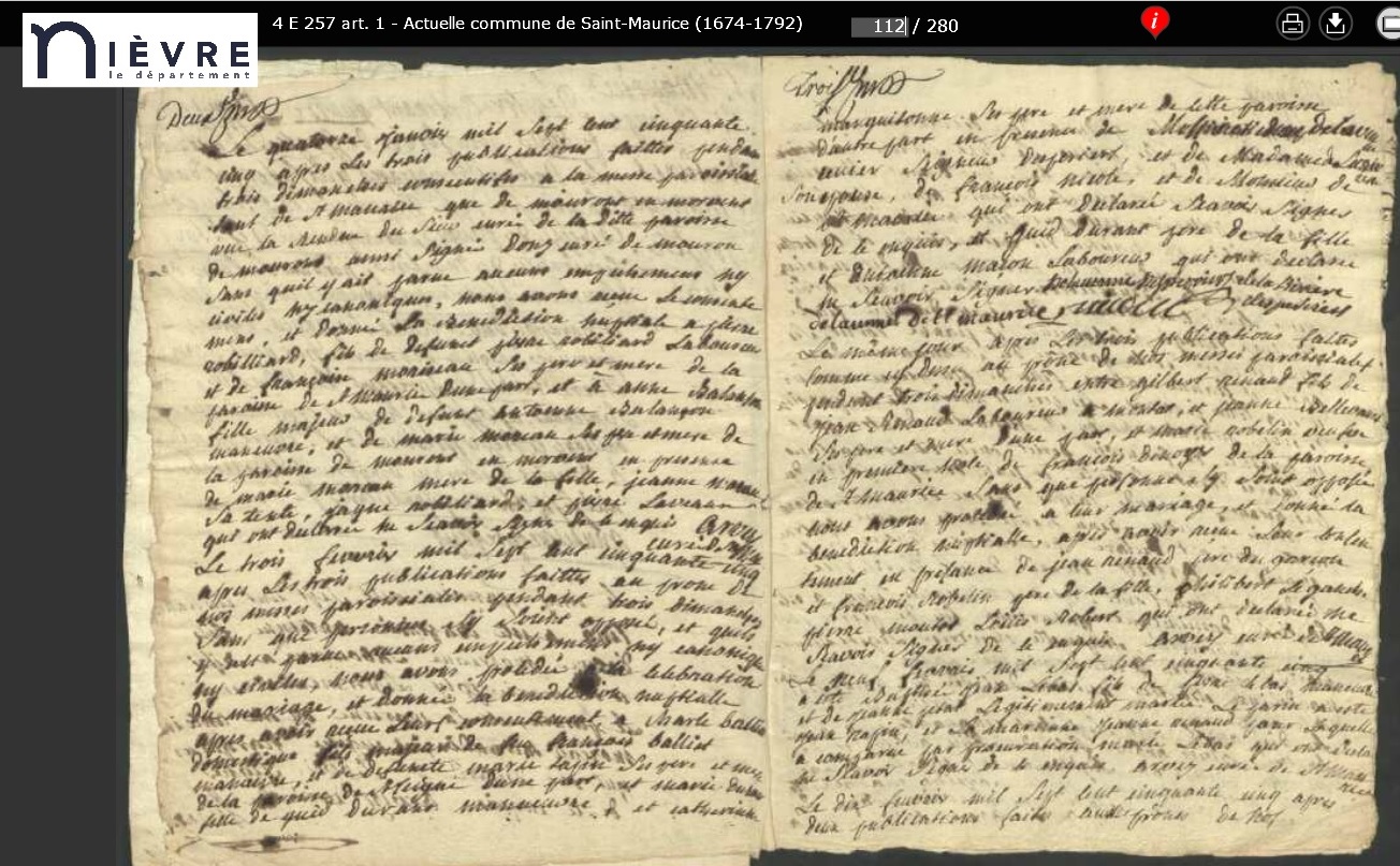 mariée le 3 février 1755 à Saint-Maurice - Nièvre (58), avec