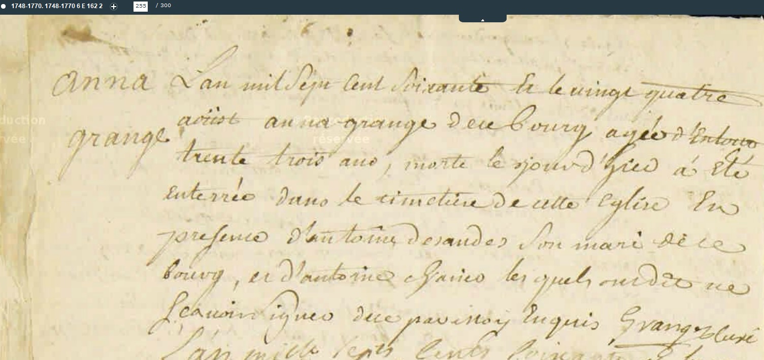 décédée le 24 août 1760 à Fournols - Puy-de-Dôme (63) à l'âge de 36 ans 11 mois et 24 jours