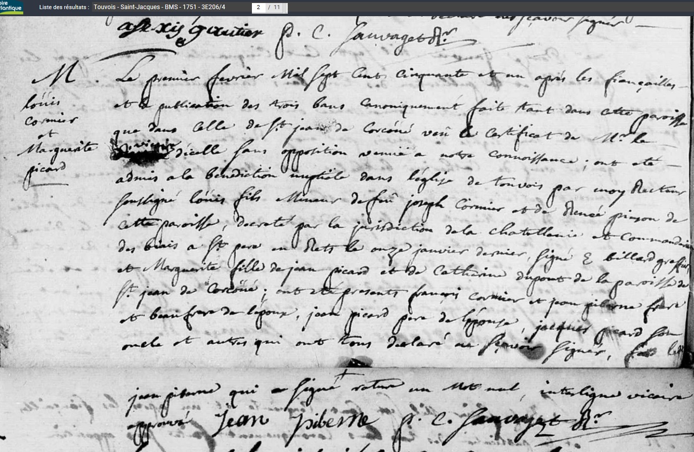 mariée le 1er février 1751 à Touvois - Loire-Atlantique (44), avec