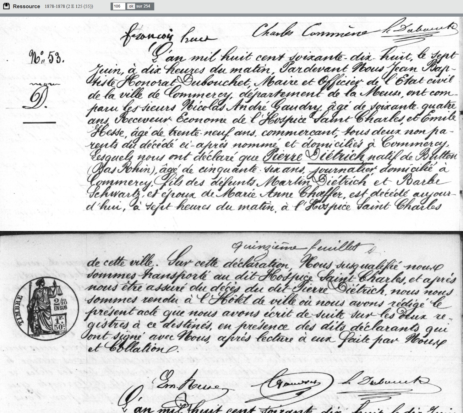 Premier DIETRICH catholique, à quitter l'Alsace et s'installer à Commercy.