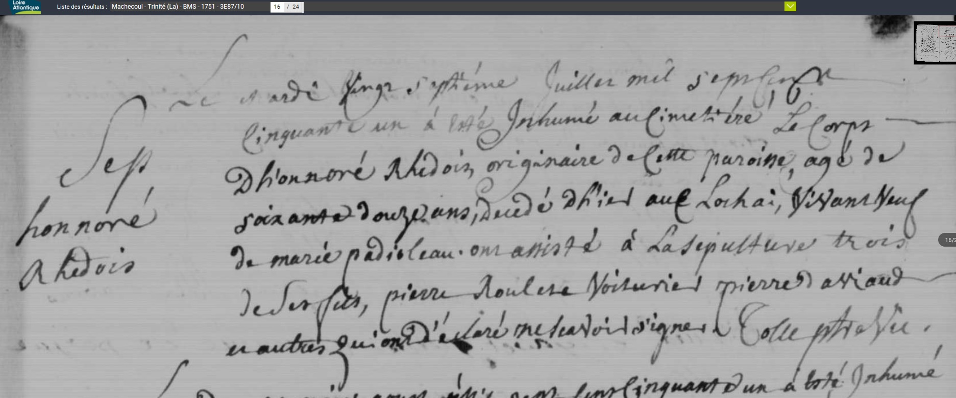 décédé le 26 juillet 1751 à Machecoul - Loire-Atlantique (44) à l'âge de 72 ans environ