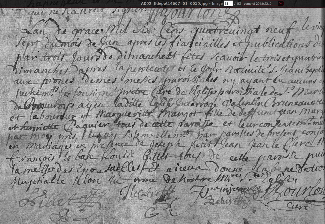 marié le 27 juin 1689 à Rouvroy-sur-Marne - Haute-Marne (52), avec