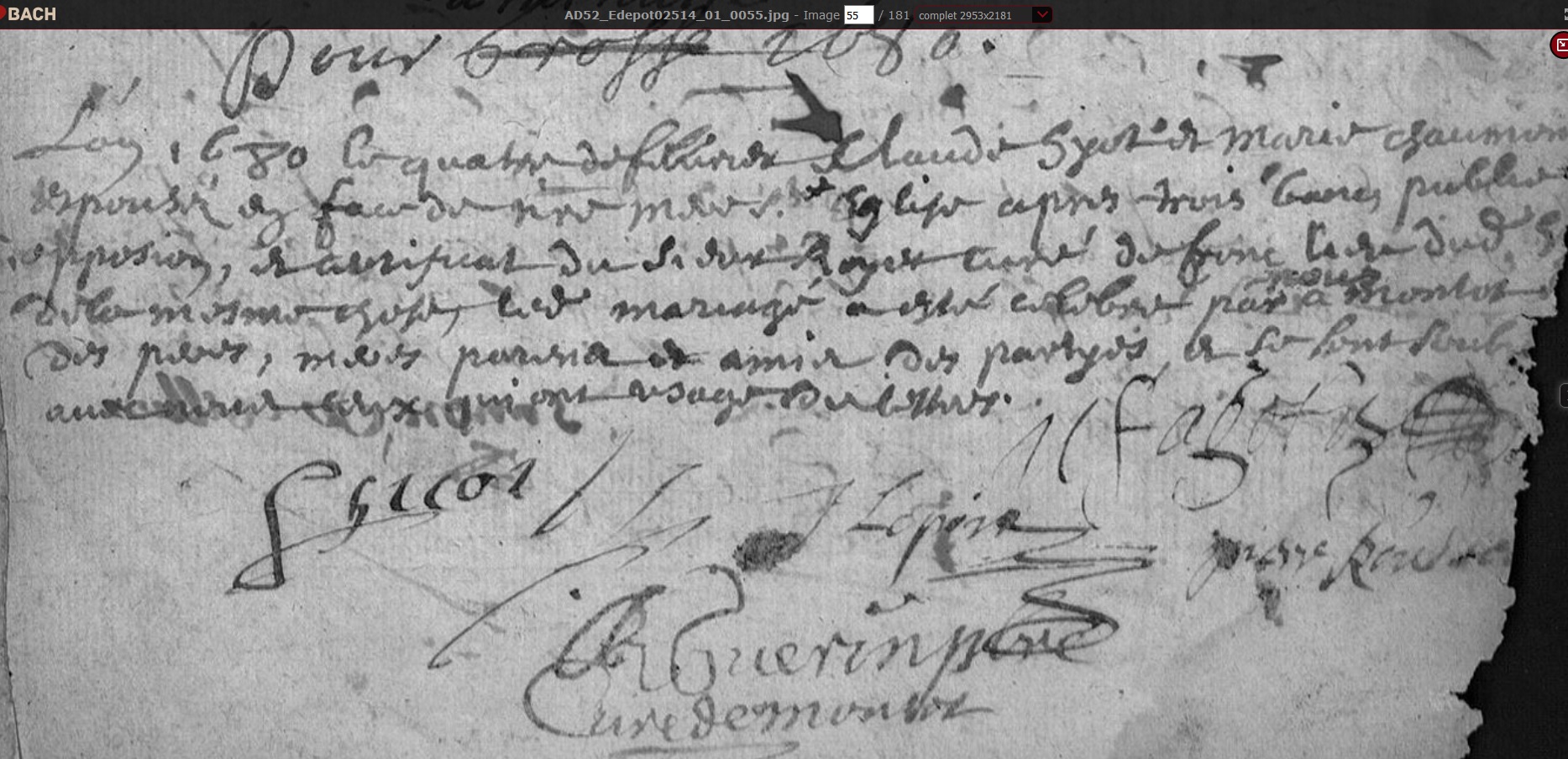 mariée le 4 février 1680 à Montot-sur-Rognon - Haute-Marne (52), avec