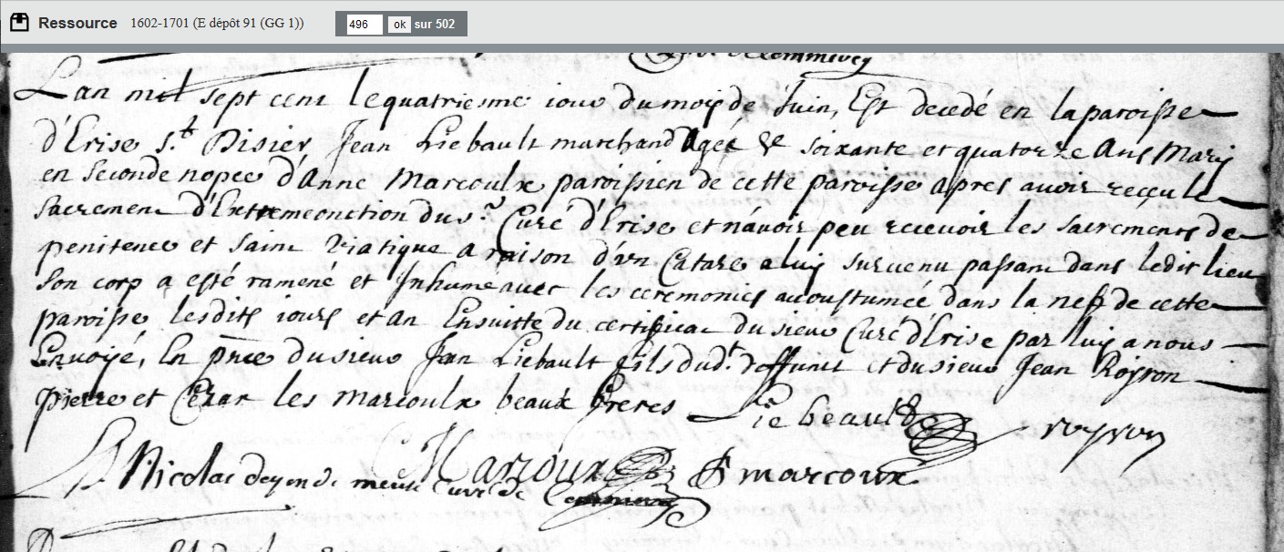 décédé le 4 juin 1700 à Commercy - Meuse (55) à l'âge de 64 ans environ