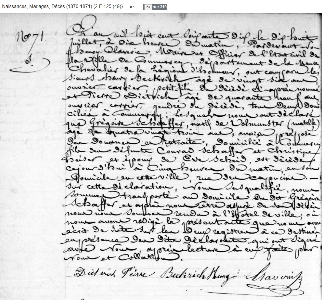 Natif de Volmunster(57 - AD), dont les actes ne sont pas numérisés