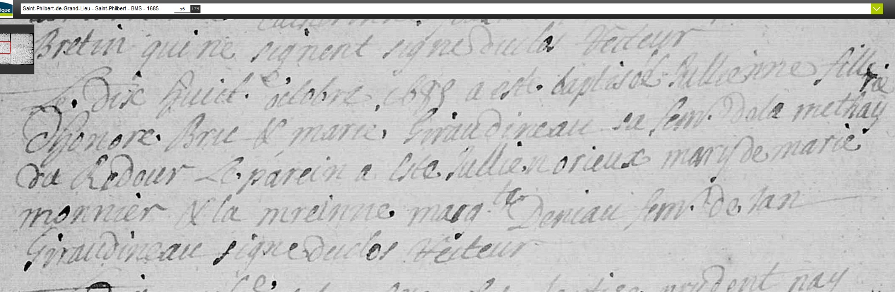- née le 18 octobre 1685 à Saint-Philbert-de-Grand-Lieu - Loire-Atlantique (44)