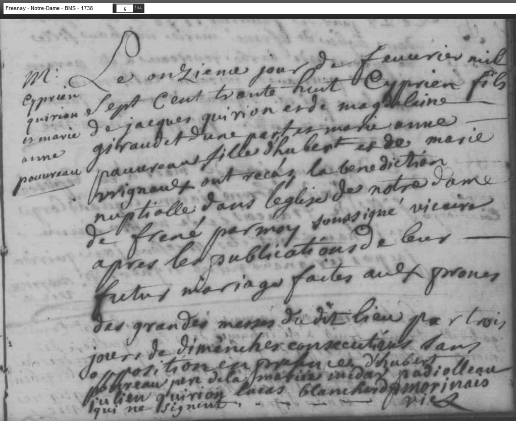 marié le 11 février 1738 à Fresnay-en-Retz - Loire-Atlantique (44), avec