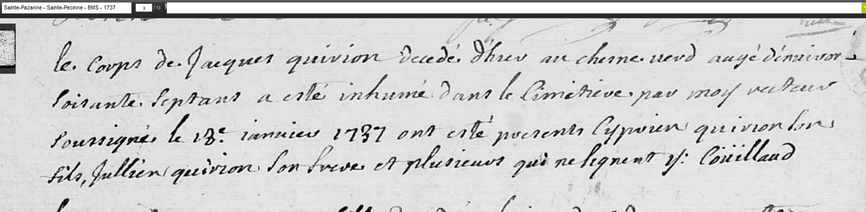 décédé le 17 janvier 1737 à Sainte-Pazanne - Loire-Atlantique (44) à l'âge de 67 ans environ