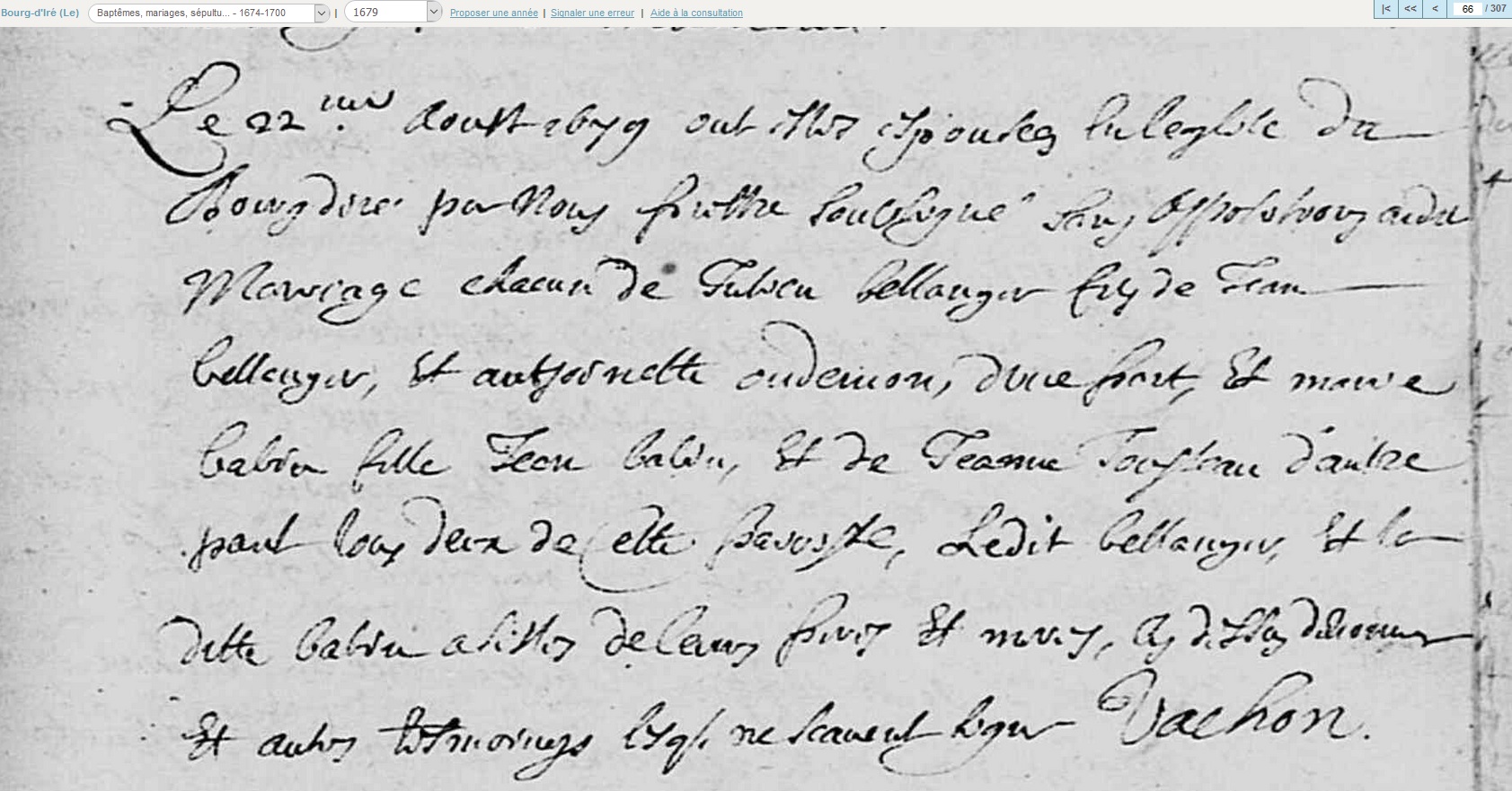 mariée le 22 août 1679 à Le Bourg-d'Iré - Maine-et-Loire (49), avec