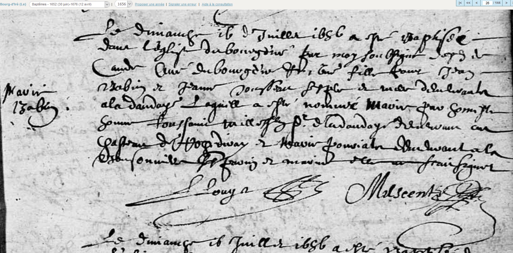 née le 16 juillet 1656 à Le Bourg-d'Iré - Maine-et-Loire (49)