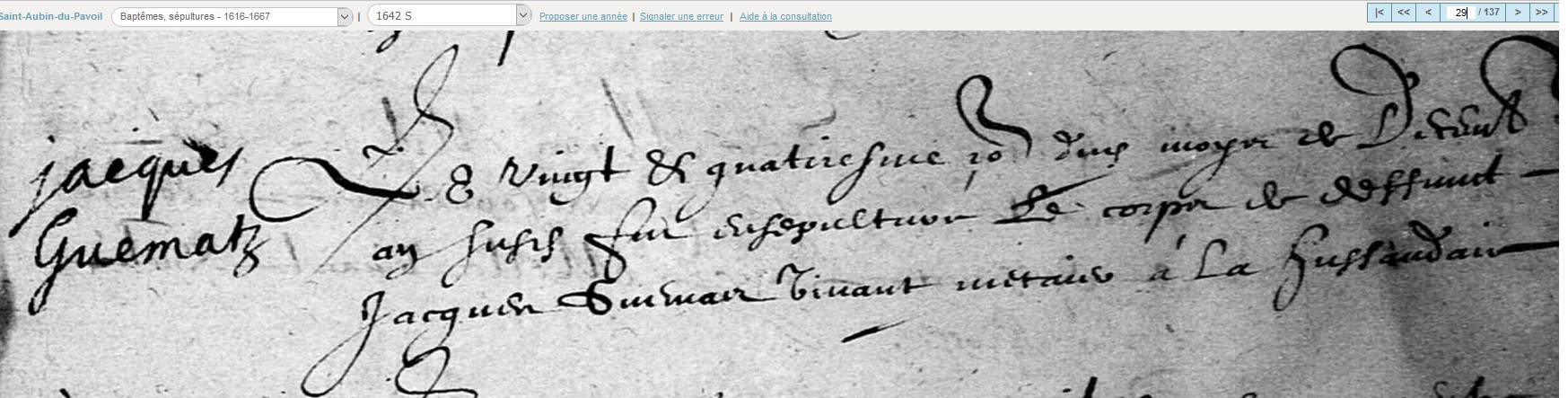 décédé le 24 décembre 1642 à Saint-Aubin-du-Pavoil - Maine-et-Loire (49)