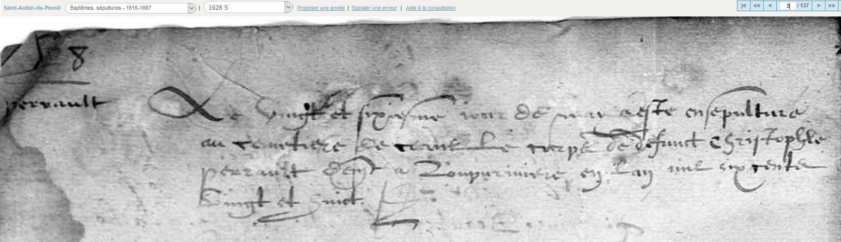 - décédé le 26 mai 1628 à Saint-Aubin-du-Pavoil - Maine-et-Loire (49)