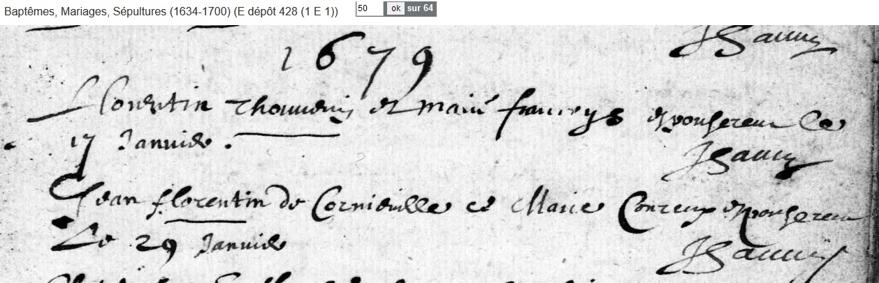 marié le 29 janvier 1679 à Ville-Issey - Meuse (55), avec