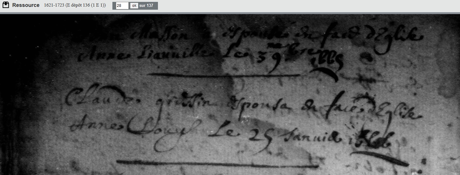 mariée le 25 janvier 1666 à Euville - Meuse (55), avec