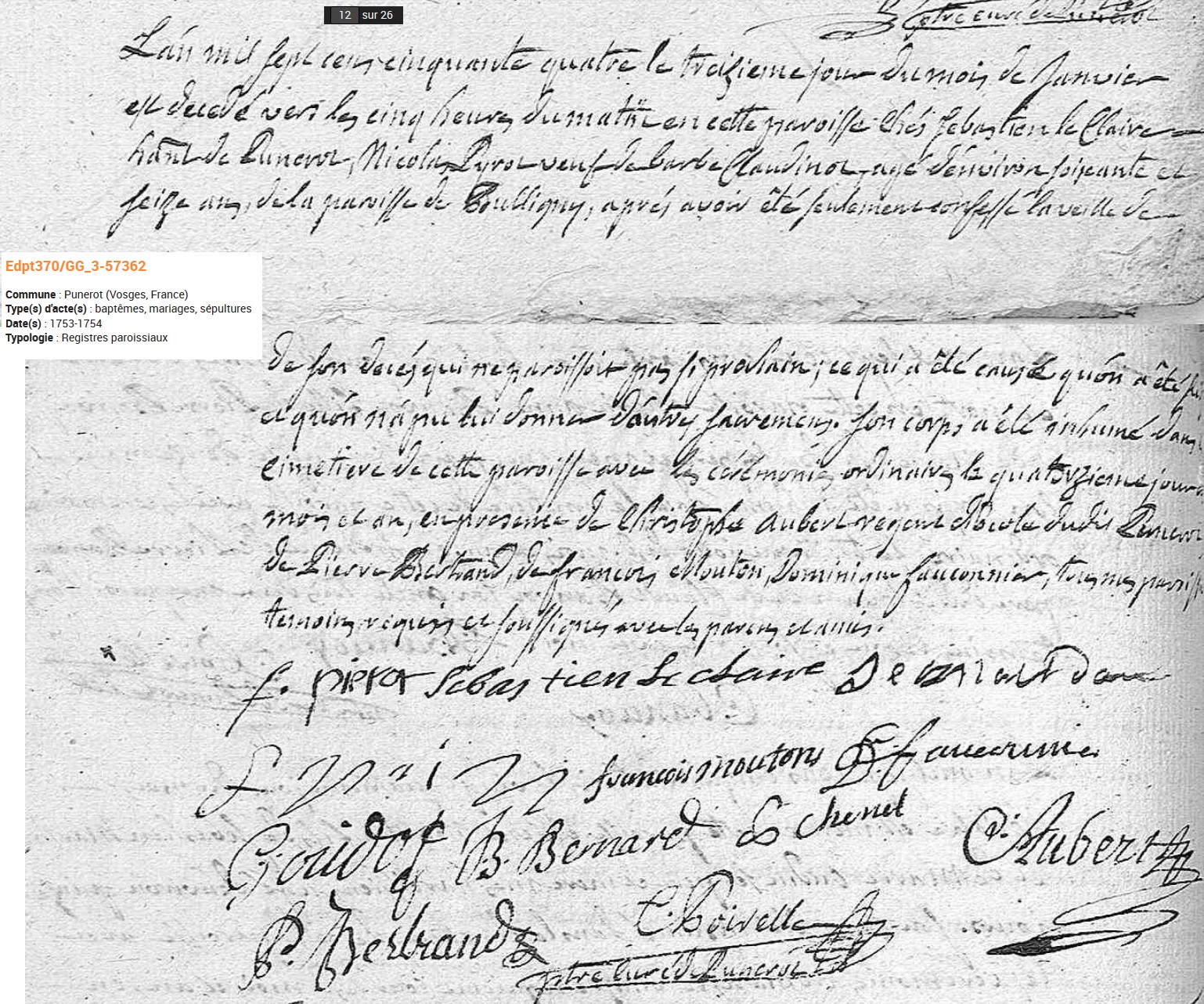 décédé le 13 janvier 1754 à Punerot - Vosges (88) à l'âge de 76 ans environ