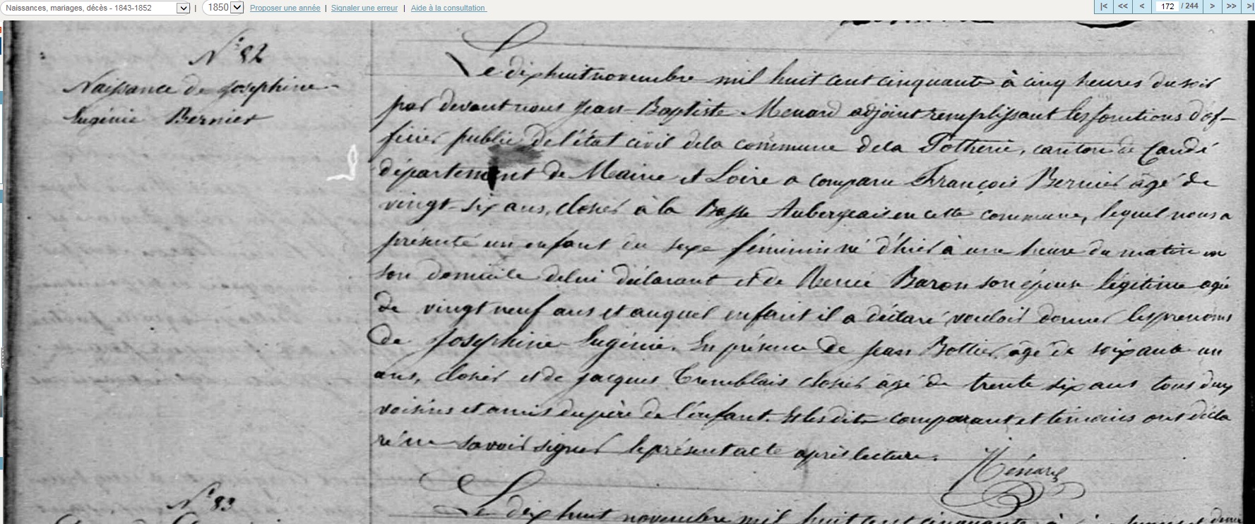 Domiciliée à Noellet en 1878 (cf. acte de naissance fils)