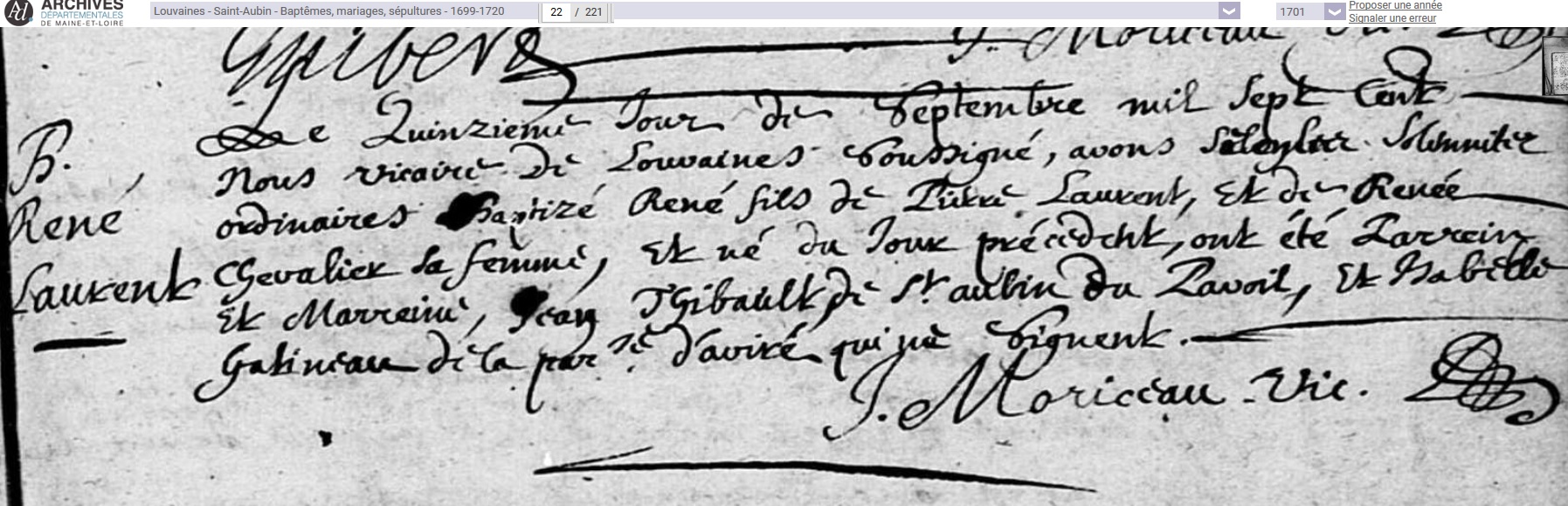 né le 14 septembre 1700 à Louvaines - Maine-et-Loire (49)