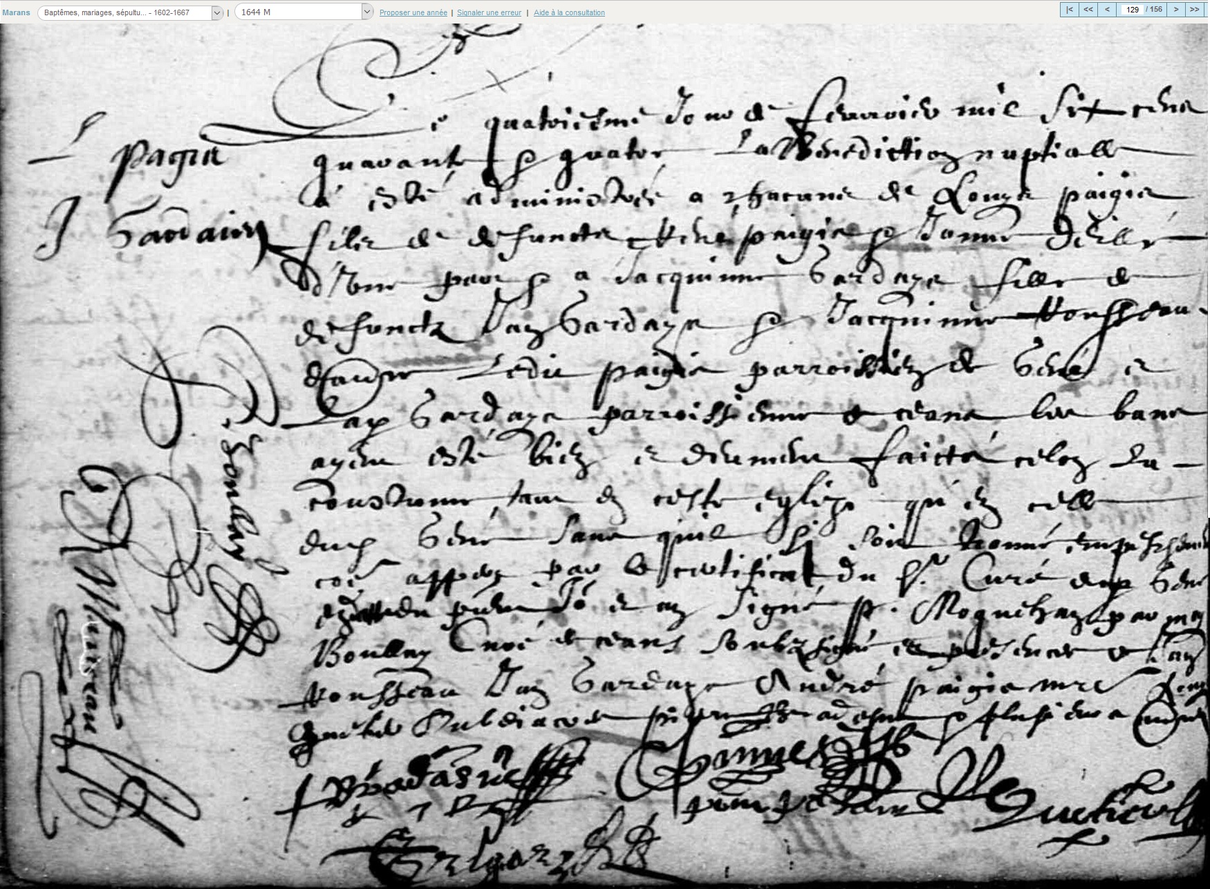 mariée le 4 février 1644 à Marans - Maine-et-Loire (49), avec