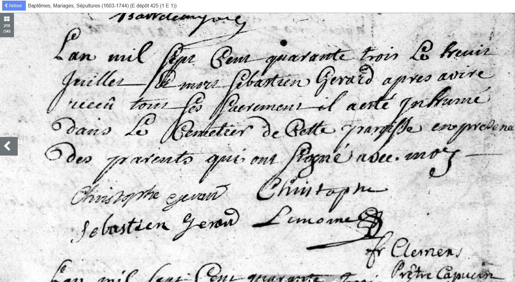 décédé le 13 juillet 1743 à Vignot - Meuse (55)