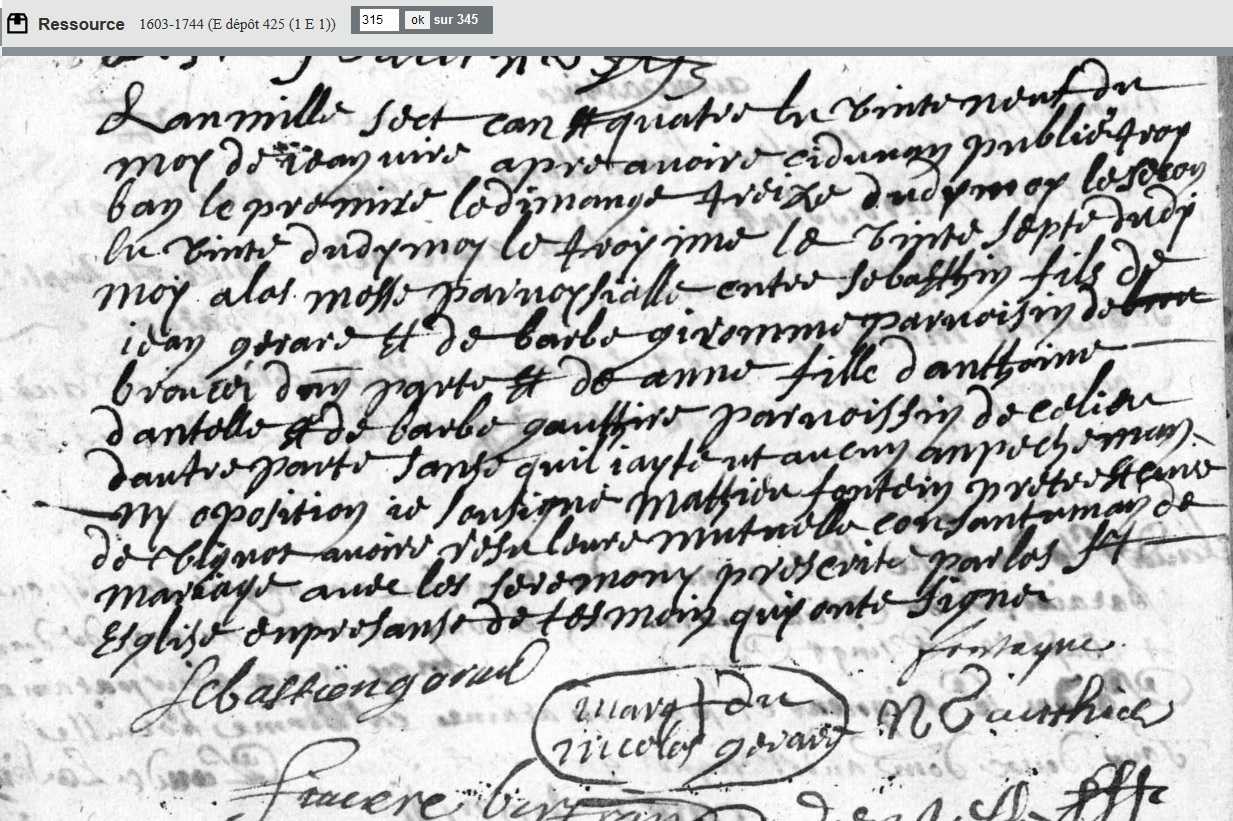 marié le 29 janvier 1704 à Vignot - Meuse (55), avec