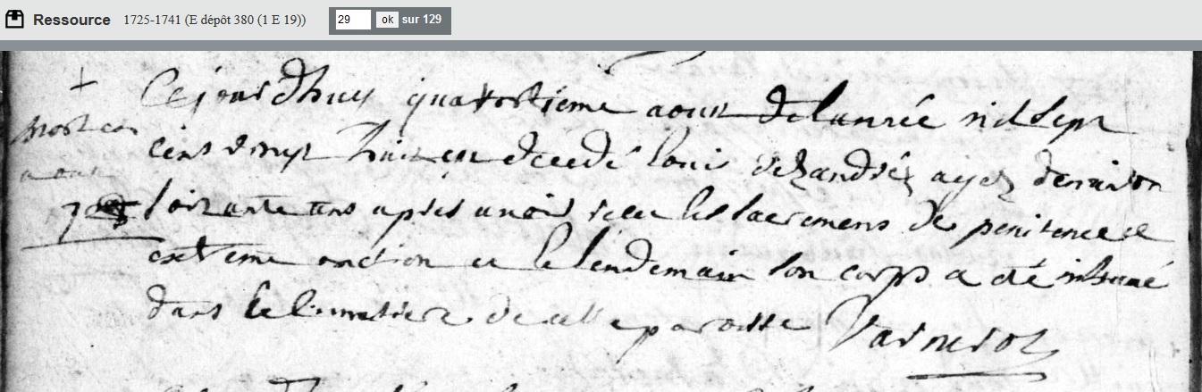 - décédé le 4 août 1728 à Sorcy-Saint-Martin - Meuse (55) à l'âge de 60 ans 4 mois et 19 jours