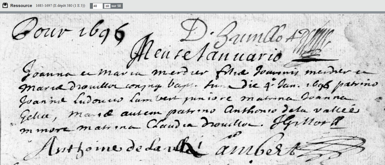 née le 4 janvier 1696 à Sorcy-Saint-Martin - Meuse (55)