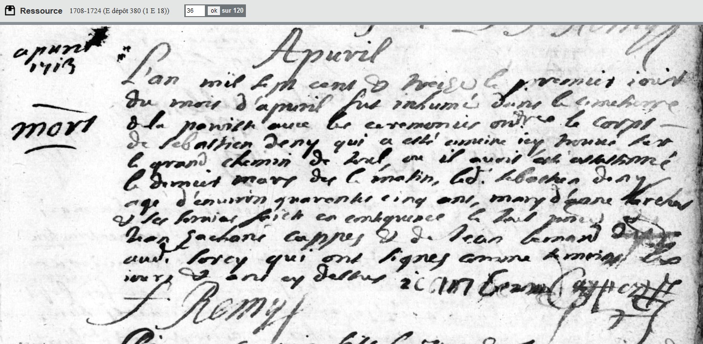 - décédé le 1er avril 1713 à Sorcy-Saint-Martin - Meuse (55) à l'âge de 44 ans 8 mois et 14 jours