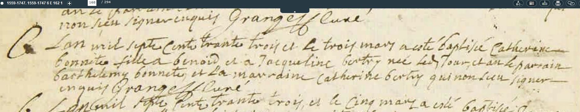décédée le 25 février 1764 à Fournols - Puy-de-Dôme (63) à l'âge de 30 ans 11 mois et 22 jours