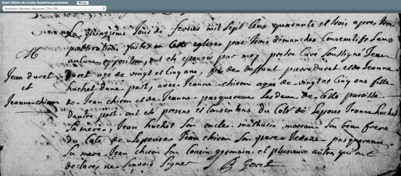 marié le 15 février 1743 à Saint-Hilaire-de-Loulay - Vendée (85), avec