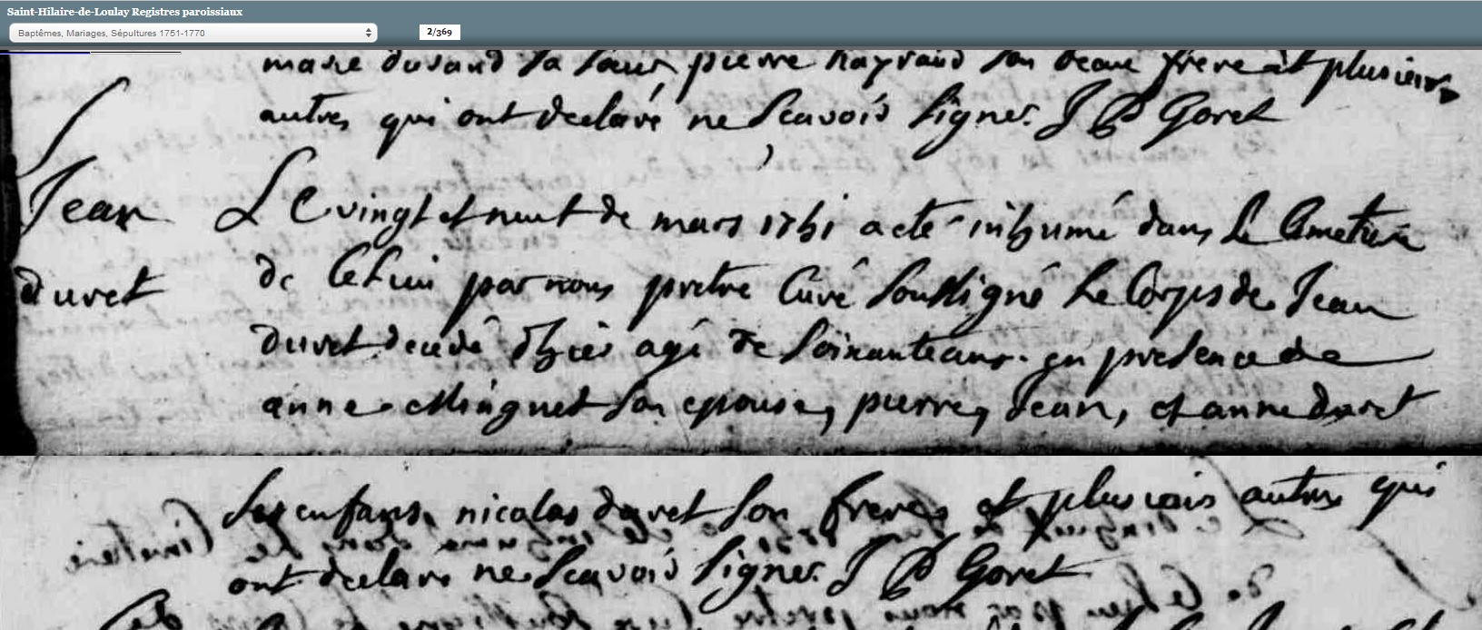 décédé le 28 mars 1751 à Saint-Hilaire-de-Loulay - Vendée (85) à l'âge de 59 ans 6 mois et 17 jours