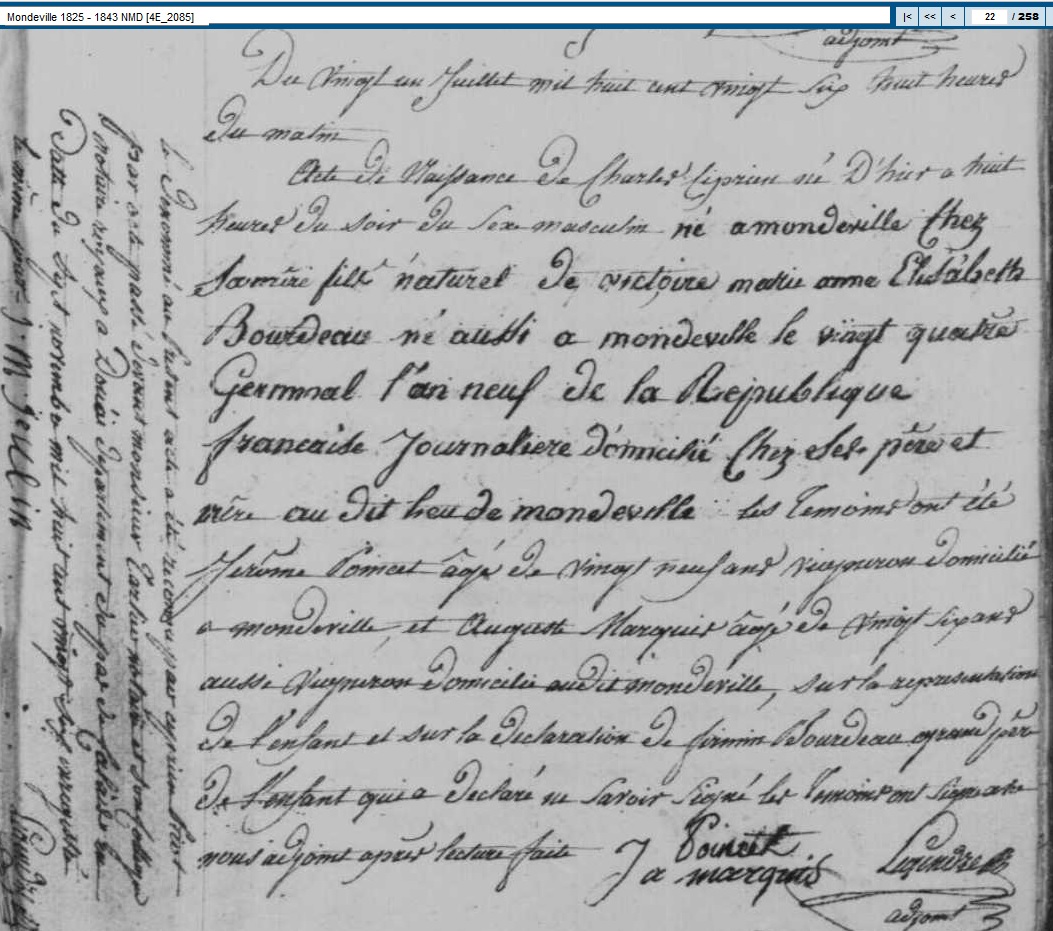 né le 20 juillet 1826 à Mondeville - Essonne (91)