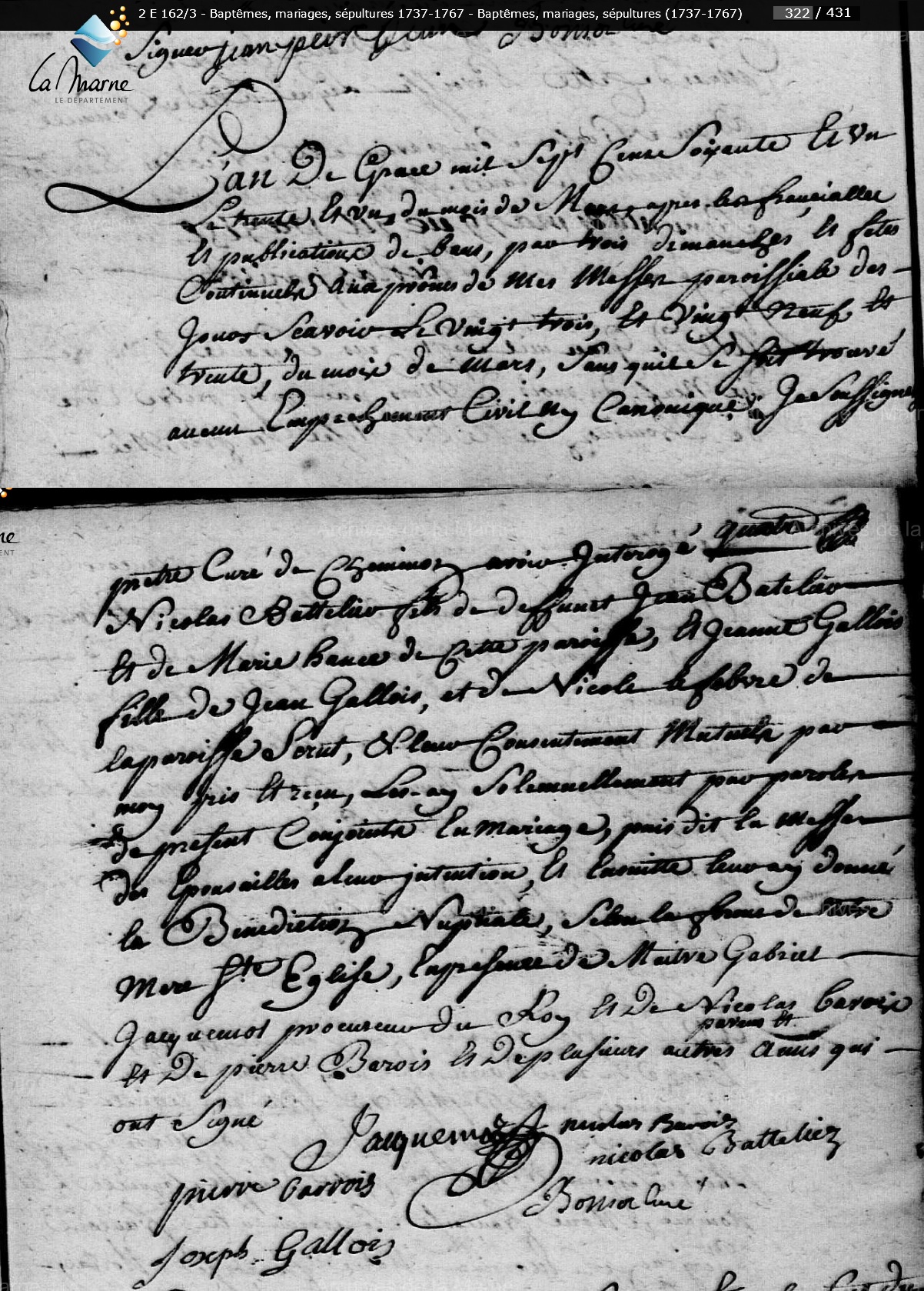 mariée le 31 mars 1761 à Cheminon - Marne (51), avec
