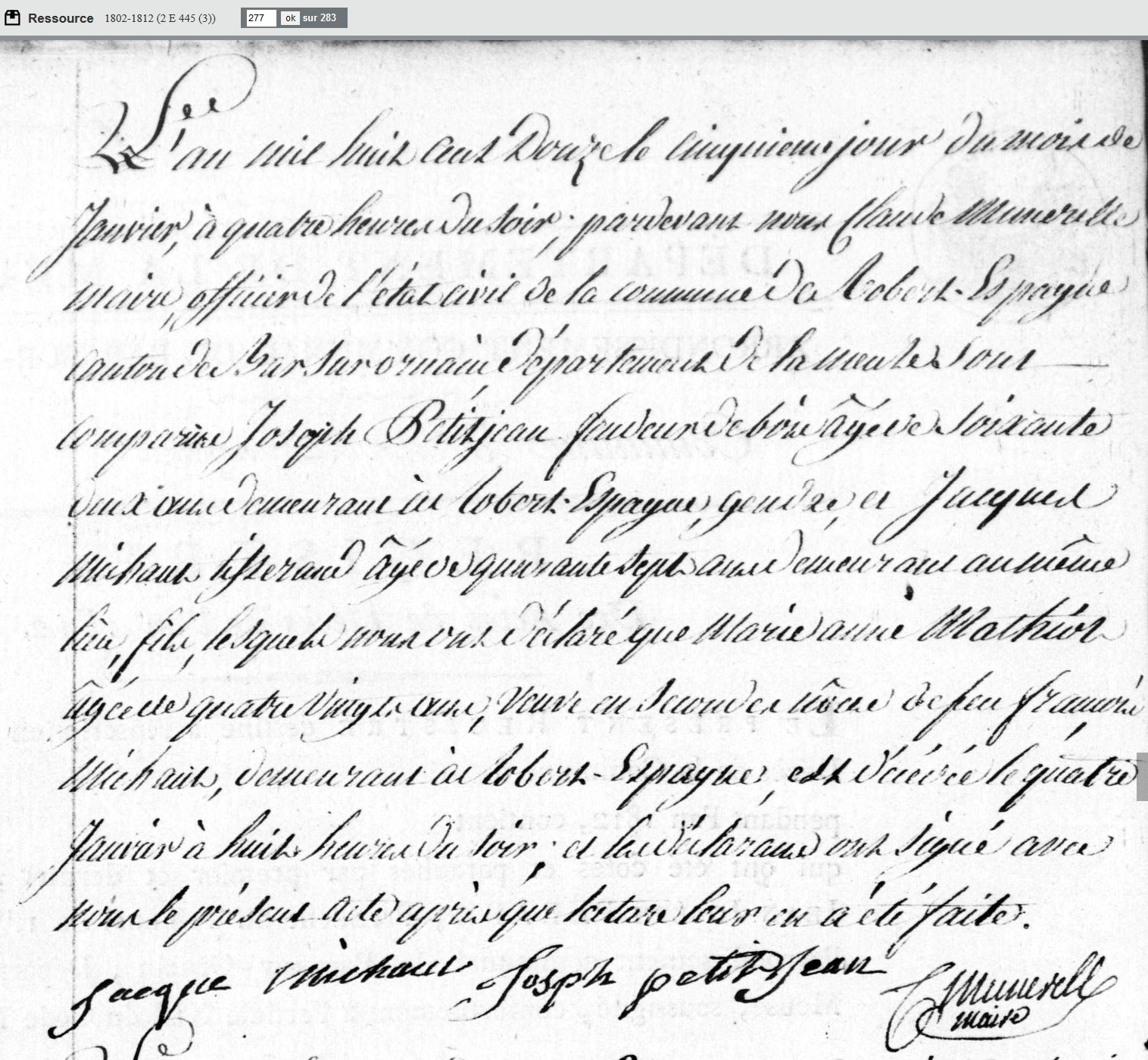 décédée le 4 janvier 1812 à Robert-Espagne - Meuse (55) à l'âge de 80 ans environ