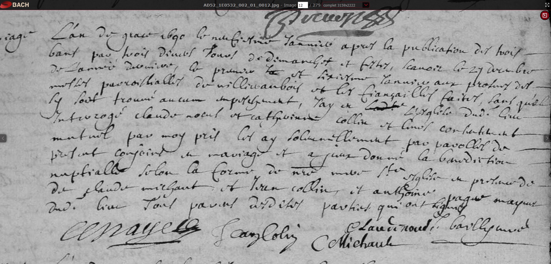 marié le 9 janvier 1690 à Villiers-aux-Bois - Haute-Marne (52), avec
