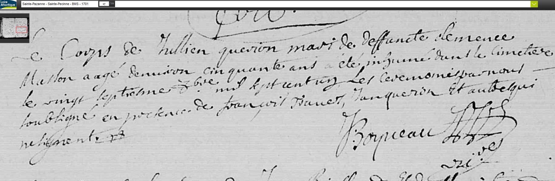 décédé le 27 octobre 1701 à Sainte-Pazanne - Loire-Atlantique (44) à l'âge de 50 ans environ