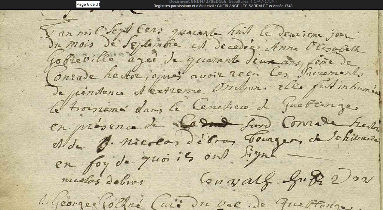 - décédée le 2 septembre 1748 à Le Val-de-Guéblange - Moselle (57) à l'âge de 41 ans 11 mois et 11 jours