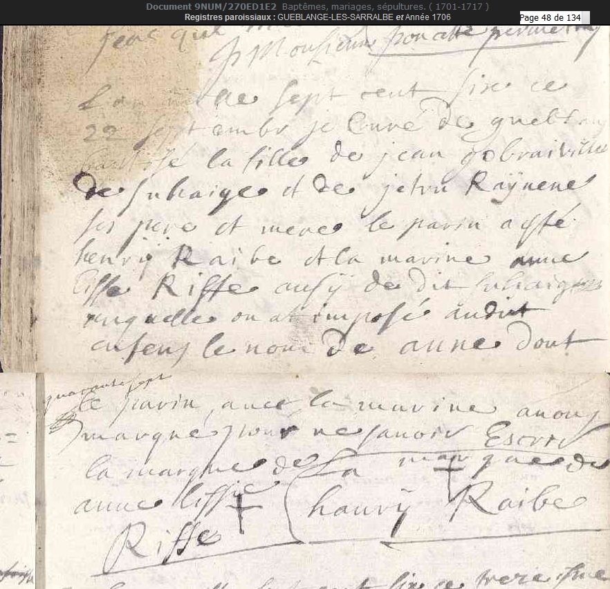 - née le 22 septembre 1706 à Le Val-de-Guéblange - Moselle (57)