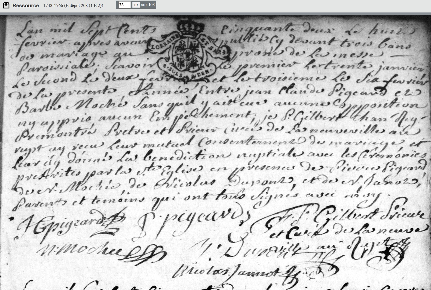 mariée le 8 février 1752 à Laneuville-au-Rupt - Meuse (55), avec