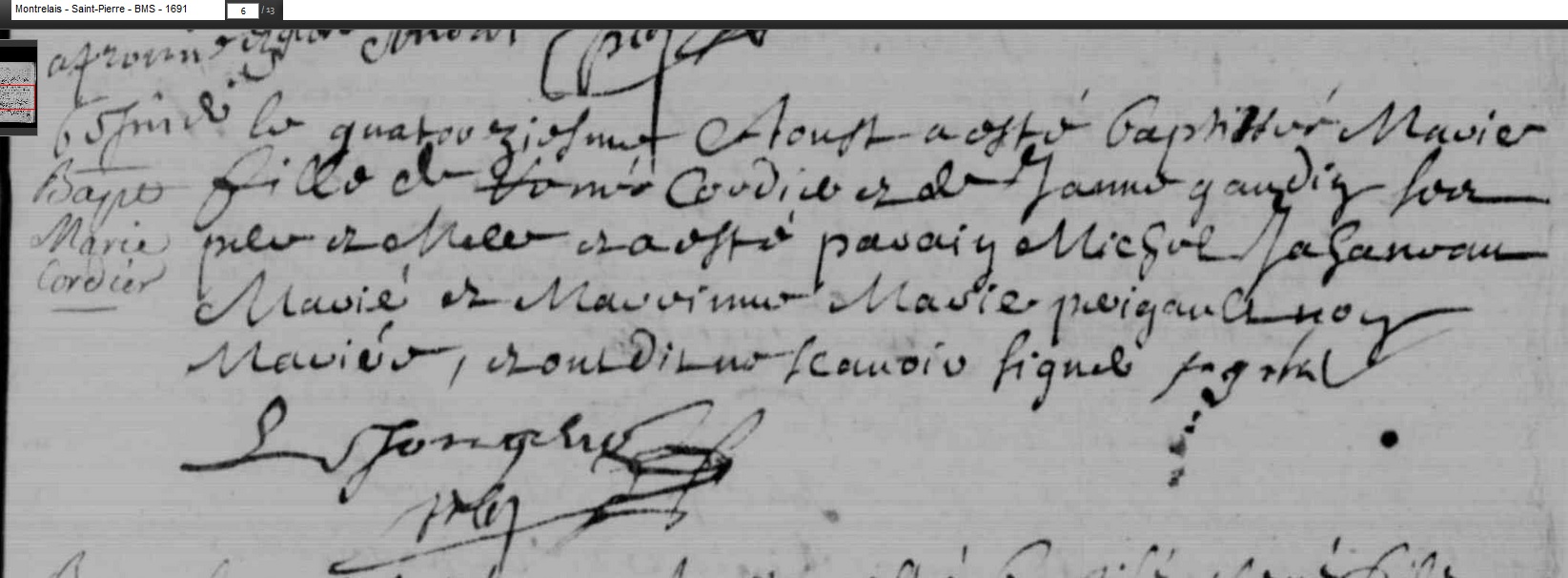 née le 14 août 1691 à Montrelais - Loire-Atlantique (44)