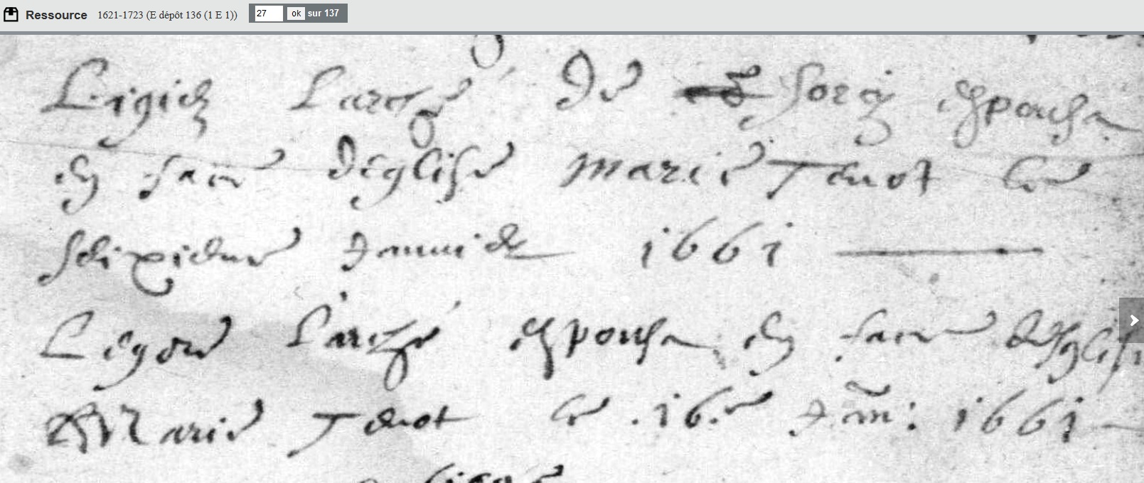 mariée le 16 janvier 1661 à Euville - Meuse (55), avec