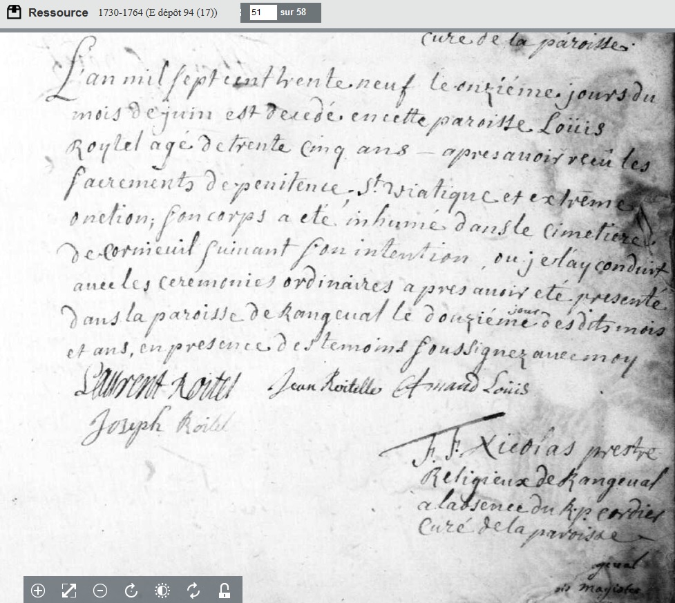 décédé le 11 juin 1739 à Rangéval - Meuse (55) à l'âge de 35 ans environ