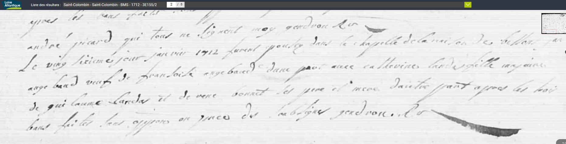 mariée le 26 janvier 1712 à Saint-Colomban - Loire-Atlantique (44), avec
