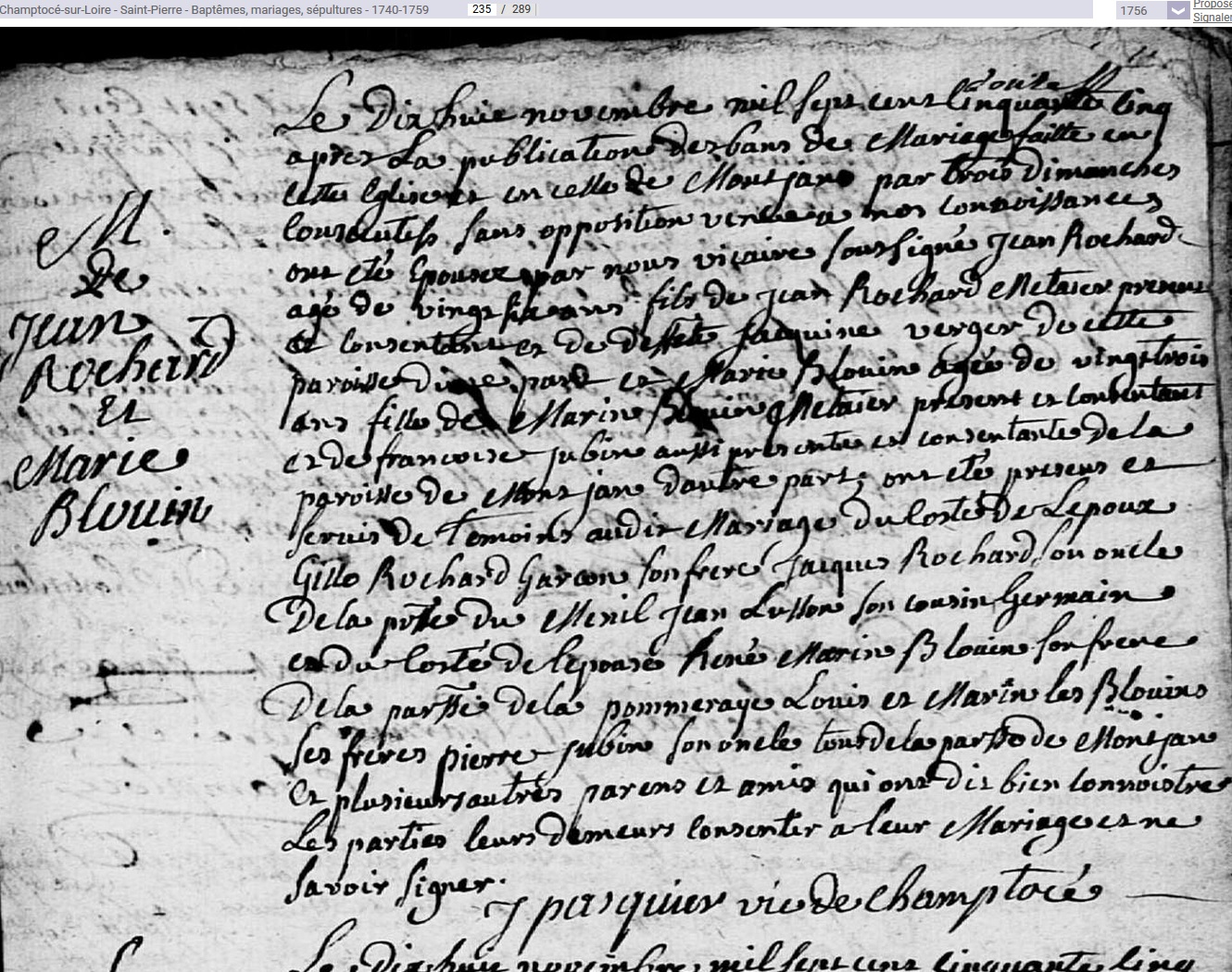 marié le 18 novembre 1755 à Champtocé-sur-Loire - Maine-et-Loire (49), avec