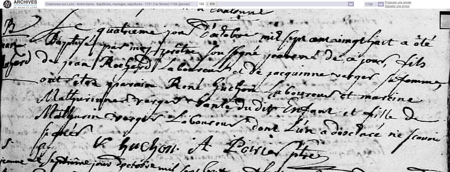 né le 4 octobre 1728 à Chalonnes-sur-Loire - Maine-et-Loire (49)
