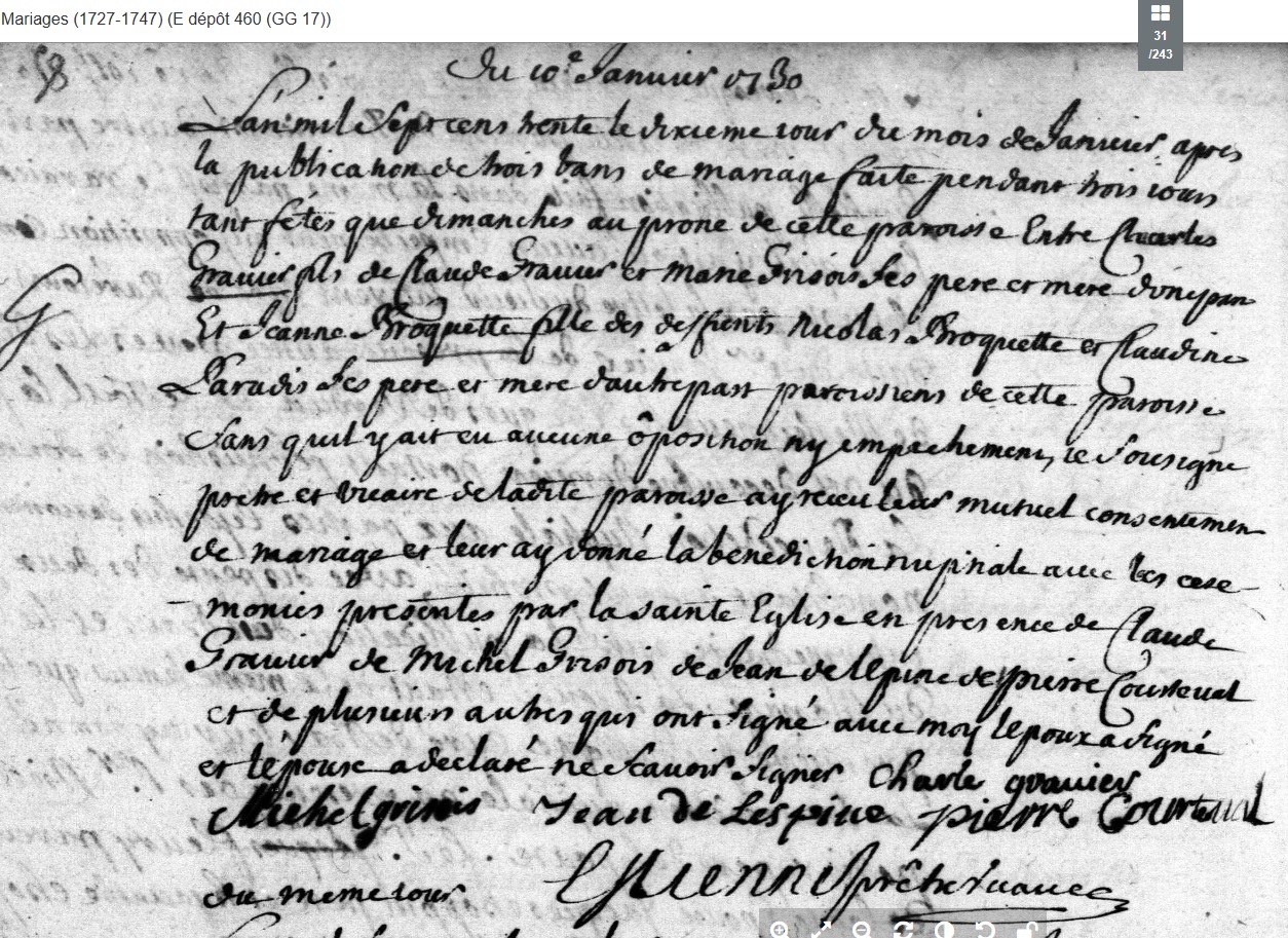 marié le 10 janvier 1730 à Bar-le-Duc - Meuse (55), avec