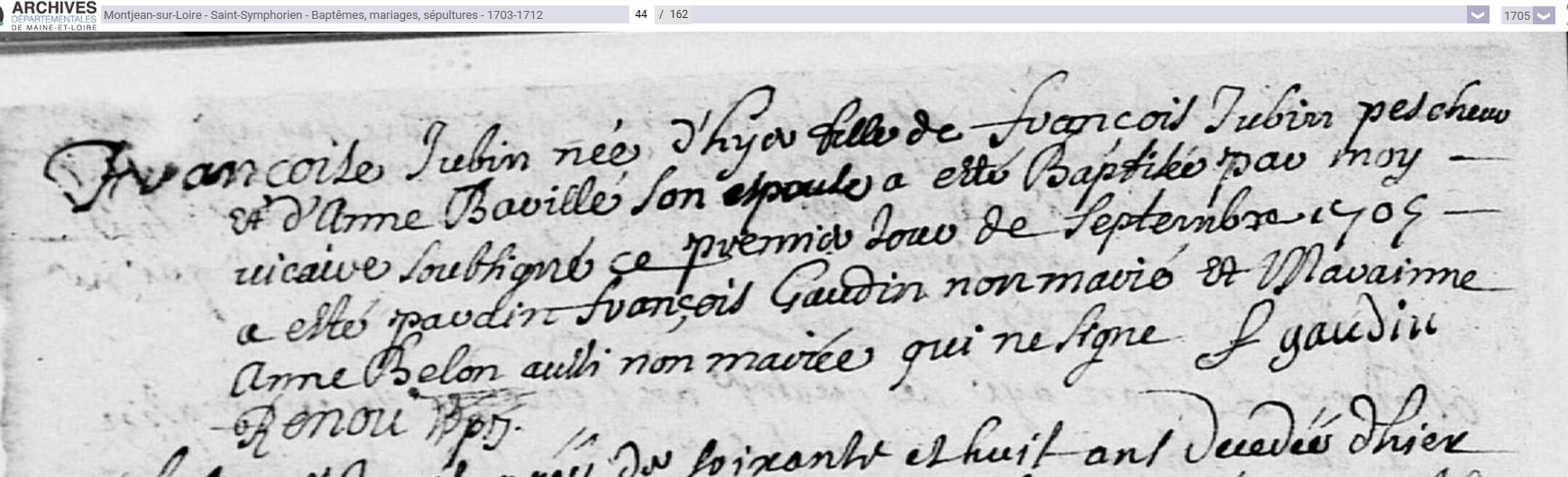 née le 31 août 1705 à Montjean-sur-Loire - Maine-et-Loire (49)