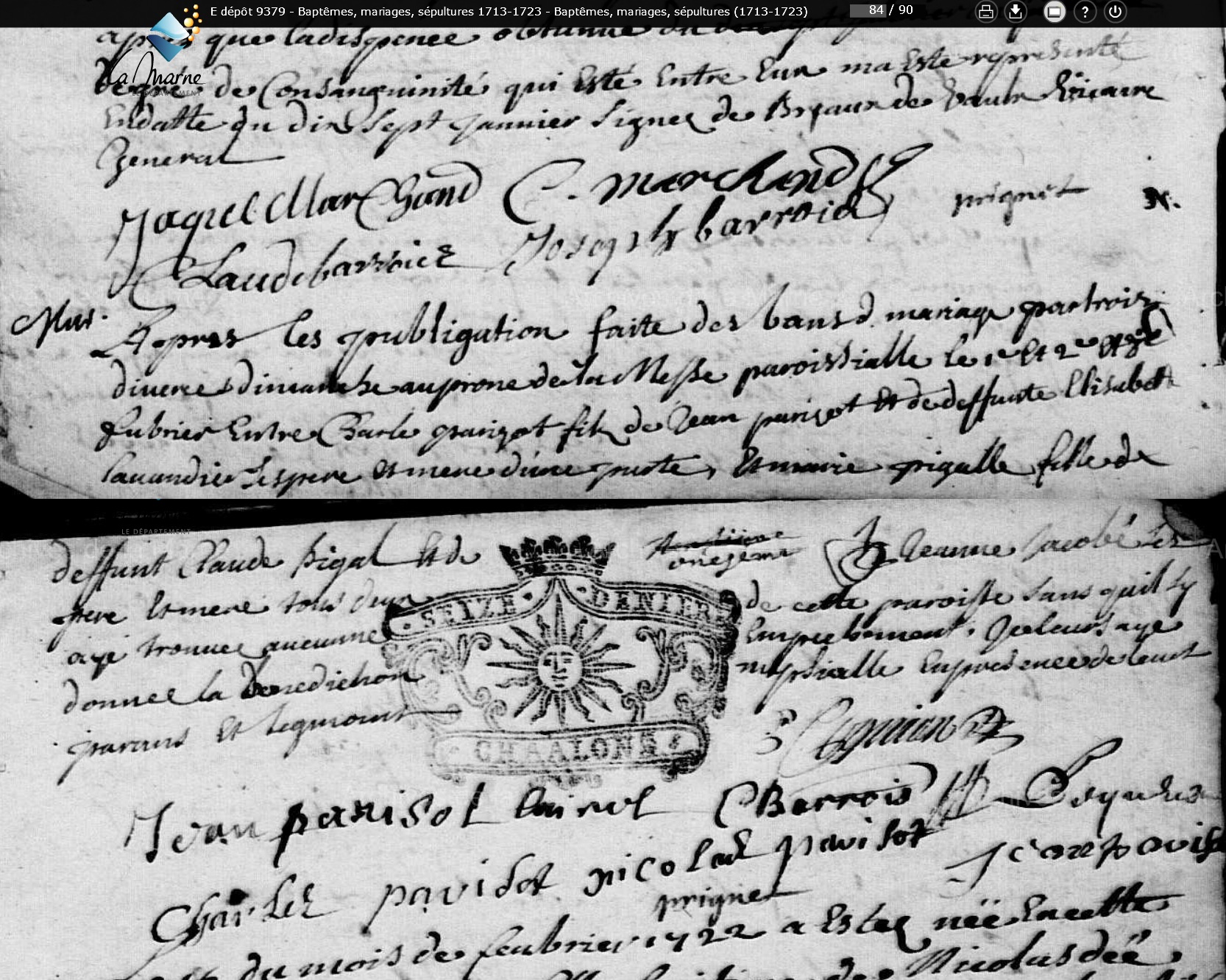 marié le 2 février 1722 à Cheminon - Marne (51), avec