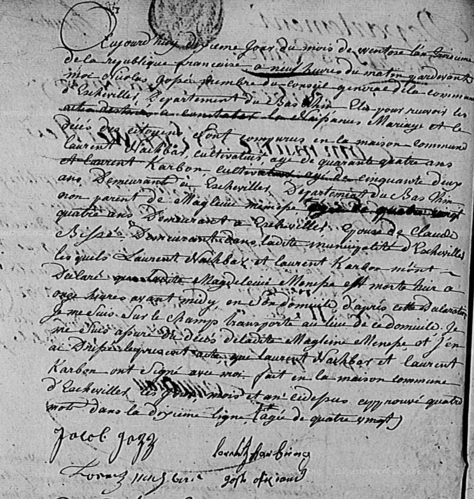 décédée le 27 février 1795 à Eschwiller - Bas-Rhin (67) à l'âge de 84 ans environ