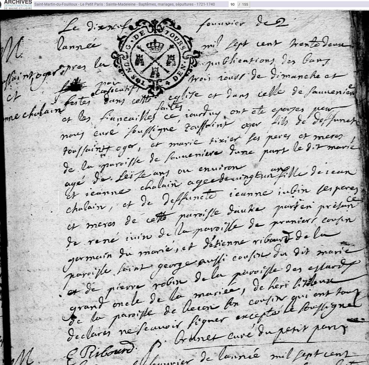 marié le 22 novembre 1740 à Savennières - Maine-et-Loire (49), avec